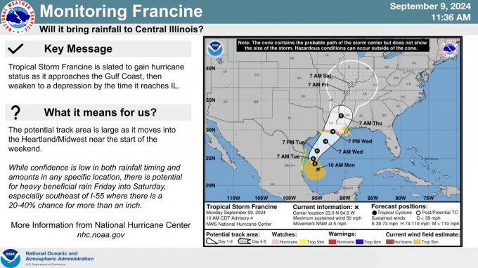 NHC는 프랜신이 루이지애나 내륙과 인근 미시시피주로 이동하면서 빠르게 약화할 것으로 예상했다.