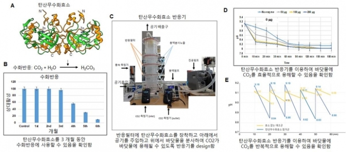 연구팀은 새로 개발한 CA를 사용해 대기중 이산화탄소를 바다에 녹이고, 바다에 녹은 이산화탄소가 바닷물 속 칼슘과 마그네슘 이온과 잘 결합해 탄산염을 형성하도록 산도(pH)를 조절하는 기술을 구현했다. 이렇게 하면 바다에 녹은 이산화탄소가 다시 대기로 방출되는 것을 막을 수 있다.