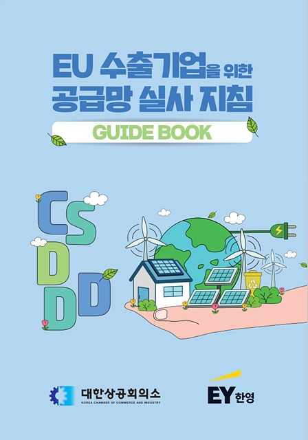 대한상공회의소는 EY한영과 공동으로 'EU 수출 기업을 위한 공급망 실사 지침 가이드북'을 발간했다고 3일 밝혔다. 이 가이드북은 최근 발효된 유럽연합(EU) 공급망 실사 지침(CSDDD, Corporate Sustainability Due Diligence Directive)에 1만8000여개 EU 진출 기업들이 대응할 수 있도록 인권·환경 실사 체크리스트를 담아놓은 것이다.