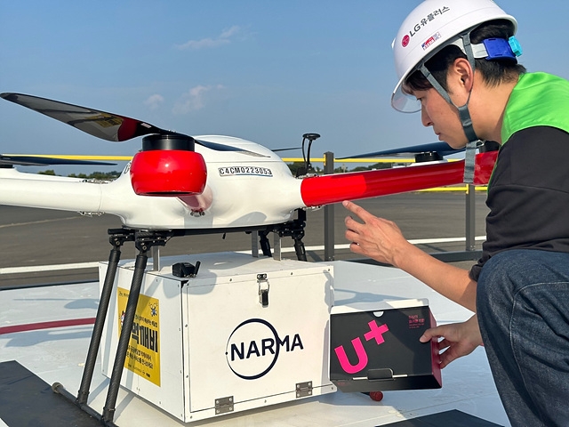LG유플러스가 국내 통신사 최초로 드론으로 섬 지역에 스마트폰을 배송했다.