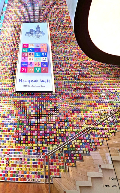 미국 뉴욕 맨해튼에 위치한 뉴욕한국문화원 신청사에 가로 8m, 높이 22m 크기에 한글이 빼곡히 써있는 '한글벽'(Hangeul Wall)이 세워졌다.