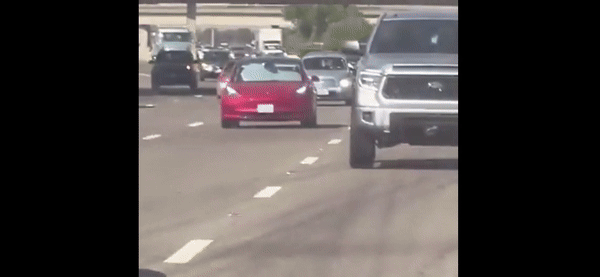 미국 한 고속도로에서 차량 앞 유리창을 가린 채 달리는 테슬라가 포착돼 화제다.