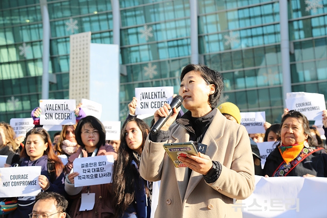 고금숙 알맹상점 대표는 기자회견에서 성명서를 통해 "자발적 조치에 의존한 협약으로는 플라스틱 문제를 해결할 수 없다"면서 "각국 정부 대표단은 이 시점에도 플라스틱 오염에 고통받는 사람들을 외면한 채 비현실적인 만장일치를 고수하고 있다"고 비판했다. 이어 "다수결이나 뜻이 맞는 국가들끼리 합의하는 방법도 있다"면서 "미래세대와 우리 모두의 건강을 보호하기 위해 절충안 없는 강력한 협약을 요구한다"고 강조했다.