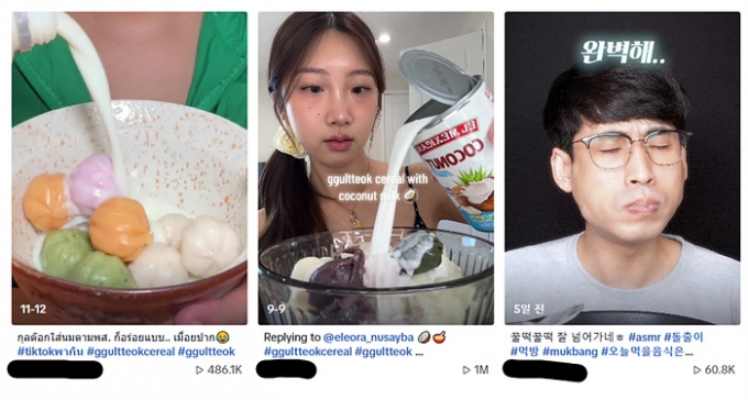 2일 틱톡과 유튜브, 인스타그램 등 다수의 소셜서비스(SNS)에는 '꿀떡 시리얼'(ggultteok cereal)이라는 제목의 숏폼 콘텐츠들이 무더기로 올라오고 있다. 꿀떡 시리얼은 우리 전통음식 꿀떡에 우유를 부어 시리얼처럼 먹는 것이다.