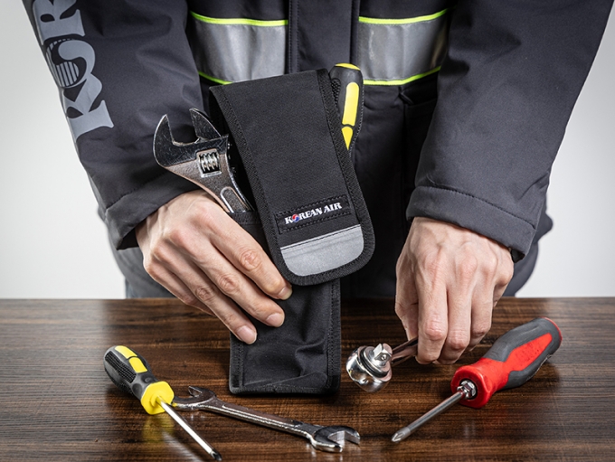 이번에 제작된 정비사용 드라이버 파우치는 총 2000개로, 기존 정비복 동계 점퍼 700여벌을 사용했고, 정비복의 원단과 특성을 최대한 살려 제작했다. 드라이버 파우치는 오는 15일부터 현장 근무하는 대한항공 정비사들에게 지급한다.