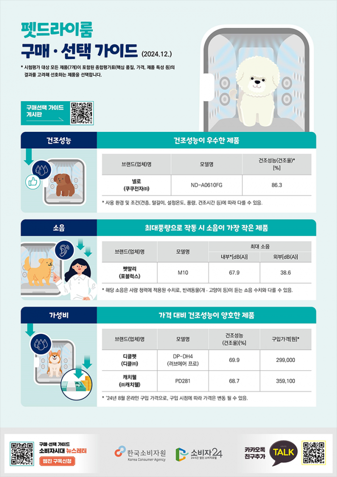 17일 한국소비자원이 시중에 유통 중인 펫드라이룸 7개 제품의 품질·안전성·경제성 등을 시험평가한 결과, 모든 제품의 안전성은 관련 기준에 적합했으나 핵심 품질이 제품마다 달라 선택시 꼼꼼한 확인이 필요하다고 밝혔다.