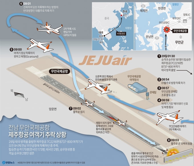 탑승객 181명 가운데 2명을 제외한 179명이 모두 희생된 제주항공 참사에 대한 의문점이 갈수록 커지고 있는 가운데 사고 여객기가 동체착륙을 시도한 활주로 끝단에 흙더미가 쌓여있어 피해를 더 키웠다는 지적이다.