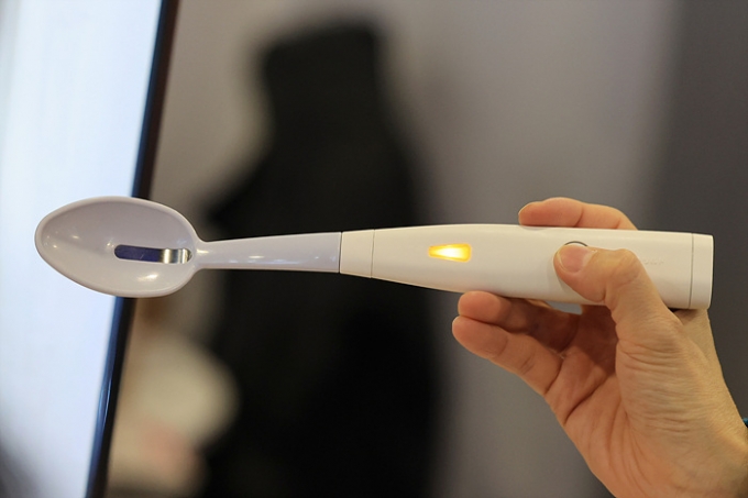 ▲약한 전류로 짠맛과 감칠맛을 더해주는 '전기 소금 숟가락'(사진=연합뉴스)