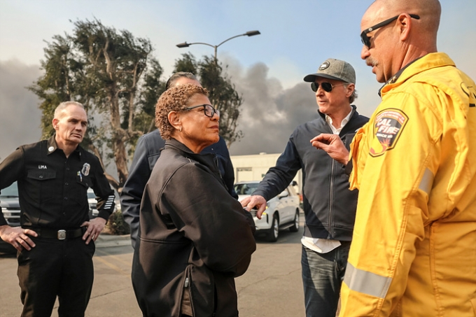 15일(현지시간) AP통신 등 주요 외신에 따르면 카렌 배스 LA 시장과 개빈 뉴섬 캘리포니아 주지사에 대한 시민들의 비판은 거세지고 있다. 산불이 발생했을 때 사용해야 할 저수지는 물이 빠져 있는 상태였고, 일부 소화전에서는 물이 나오지 않거나 작동되지 않는 것도 있었기 때문이다.
