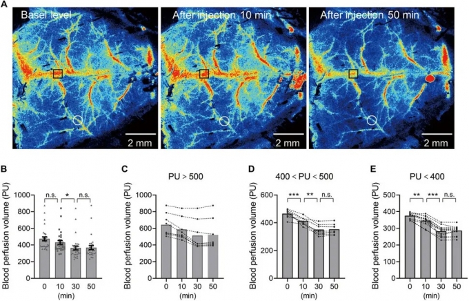 뇌혈관의 혈류 속도는 미세플라스틱 주입 10~30분 후부터 눈에 띄게 낮아졌고, 이같은 현상은 미세한 혈관들일수록 더 두드러지게 나타났다. 혈류 막힘 현상은 7일 정도 지속됐고, 28일 후에도 완전히 사라지지 않았다.