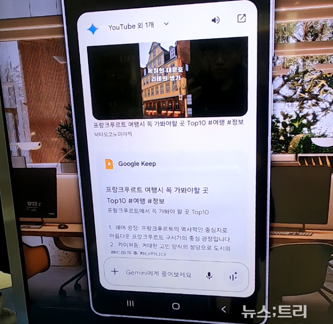 스마트폰 측면의 AI 버튼을 누른 다음 "다음주 월요일에 독일 수도로 가는 인천공항 비행기 표를 알아봐"라고 말하자, 즉시 예약 가능한 표와 가격을 알려주고 예약할 수 있는 링크도 안내해줬다. "가면 어떤 볼거리가 있는지 추천하는 영상을 찾아보고 내용도 요약해줘"라고 명령하니 영상을 직접 탐색하고 내용까지 텍스트로 요약해줬다.