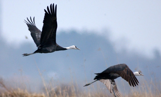 겨울철 우리나라 습지를 찾아와 우아한 비행으로 장관을 연출하는 대표적인 겨울철새 흑두루미가 환경부의 '2월의 멸종위기 야생생물'로 선정됐다.