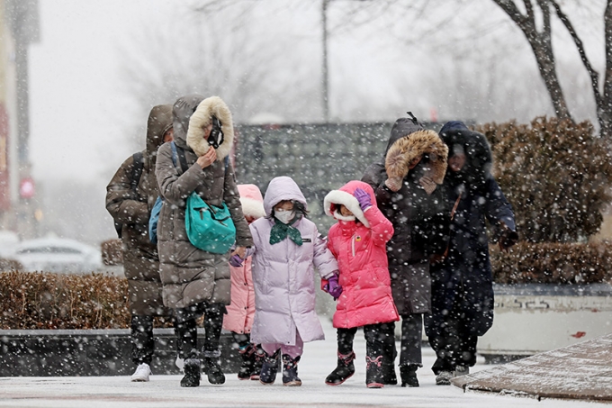 중국 북부에 자리한 대륙고기압이 더 확장되면서 우리나라 쪽으로 더욱 더 찬 공기를 밀어넣고 있어 추위가 길어지고 있다. 여기에 대기 상층 기압골의 영향으로 눈까지 내린다.
