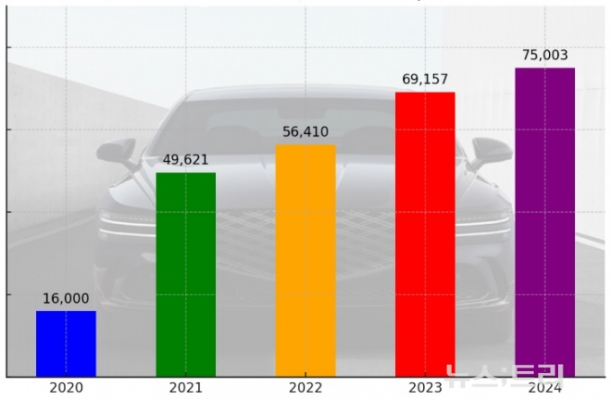 26일 완성차 업계에 따르면 현대자동차는 지난해 미국에서 제네시스를 7만5003대 판매했다. 이 가운데 미국 현지에서 생산되는 GV70(전동화+내연기관) 기종 약 2만9000여대를 제외하면 4만6000대가 관세대상이다. 이는 제네시스 미국 판매량의 61.3%에 이른다.