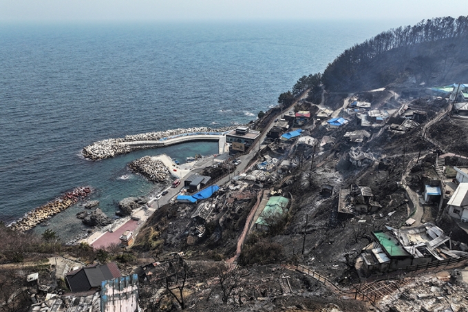 지난 22일 경북 의성에서 발생한 산불이 6일째 타오르며 동해안까지 도달했다. 27일 내릴 것으로 기대했던 비는 아직도 소식이 없고 더딘 진화에 진화율마저 뚝 떨어지며 역대급 피해를 낳고 있다.