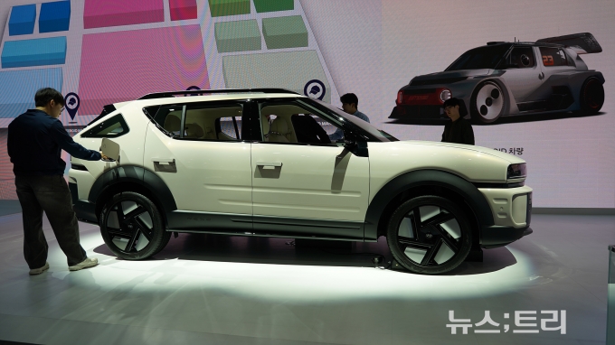 현대차 부스 안쪽에는 소형 전기차 '캐스퍼 일렉트릭' 기반 콘셉트카인 '인스터로이드'가 전시됐다. 캐스퍼의 귀여운 이미지는 유지하면서 F1 전용 레이싱카를 연상시키는 디자인을 가미해 관람객들의 발길을 멈춰 세웠다.
