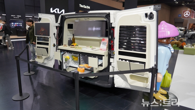 특히 LG와의 협업을 통해 모바일 오피스용 '슈필라움 스튜디오'와 차크닉(Car+Picnic)용 '슈필라움 글로우캐빈' PV5 콘셉트카를 공개하며 차량 실내공간에서의 이색적인 공간경험이 가능하도록 만들었다.