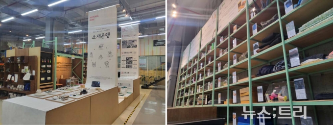 지하 1층은 각종 소재들이 차곡차곡 정리돼 있는 소재은행이 있다. 밀알복지재단 굿윌스토어와 협업해 수거한 목재, 플라스틱, 원단, 의류 등 소재들이 보관돼 있다. 시민 누구나 이용할 수 있다. 관계자는 "주로 대학생들이 과제작품 제작을 위해 이곳에서 소재를 구입한다"면서 "외국인들도 많이 이용하고 있다"고 말했다. 소재는 1층에서 체험활동을 하면 받을 수 있는 코인으로도 교환할 수 있다.