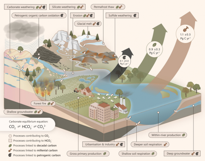 연구에 따르면 이 오래된 탄소들은 1955년 이전 대기 중에 존재하던 탄소로, 대부분 깊은 토양, 고대 퇴적층, 암석 내 유기물 등 장기 저장소에 보관돼 있던 것이다. 탄소들은 지하수 흐름, 침식, 암석 풍화 등을 통해 하천으로 유입된 후 물 표면을 통해 대기로 방출되고 있었다. 연구팀은 이러한 '지질·토양 기반 탄소 누출'이 연간 지상 생태계 전체 탄소 흡수량에 버금가는 규모라고 설명했다.
