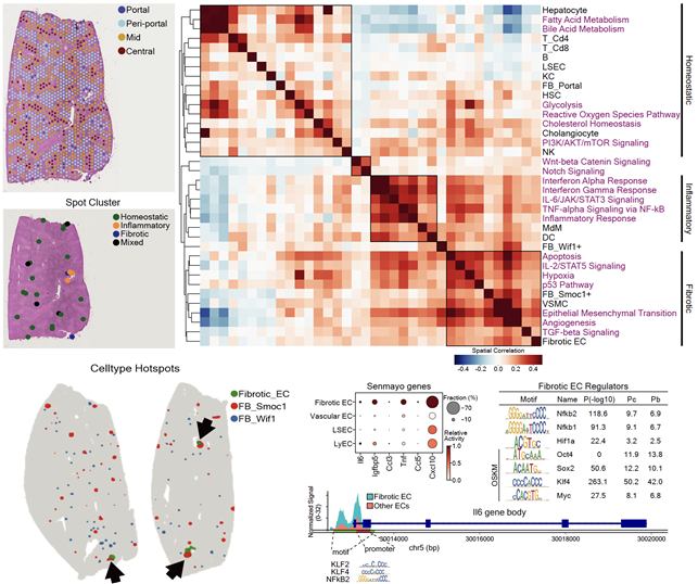또한 노화 간 조직 안에서 혈관내피세포가 본래 역할을 잃고, 선천면역 반응을 일으켜 면역세포 유입을 돕는 과정도 확인됐다. 섬유아세포의 공간적 위치도 정량화해 이들이 조직 재생과 만성 섬유화 진행에 관여한다는 점을 밝혀냈다.