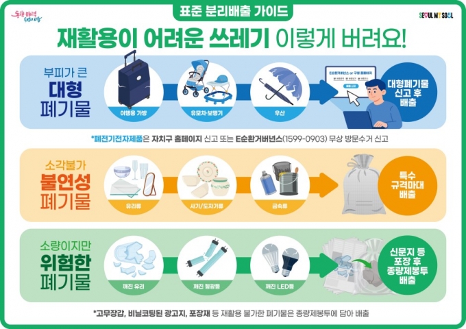 정확한 품목별 배출기준은 '내 손안의 분리배출' 모바일앱과 자치구 누리집의 환경·청소 분야 메뉴를 통해서도 확인할 수 있다.
