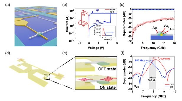 울산과학기술원(UNIST) 전기전자공학과 김명수 교수와 반도체소재·부품대학원 윤태식 교수팀은 바나듐 산화물(Vanadium Oxide) 멤리스터(memristor) 기반 RF 스위치를 개발했다고 25일 밝혔다.