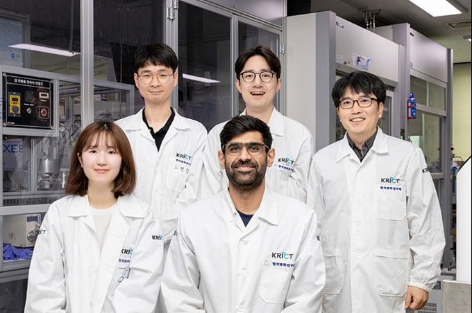 ▲(왼쪽 아래부터 시계 반대 방향으로) 1저자 노유림 화학연 학생연구원, Ali Awad 학생연구원와 교신저자 황영규 책임, 김지훈 선임 그리고 공동저자 오경렬 선임 (사진=한국화학연구원)