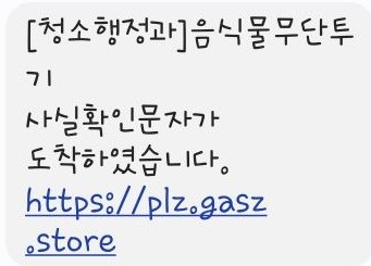 대부분의 관공서는 폐기물관리법 위반 시 문자가 아니라 우편물로 과태료 고지서를 발송한다. 관공서 사칭 메시지를 받았다면 절대 링크를 누르지 말고 해당 부서에 전화해 사실관계를 확인하는 것이 좋다.