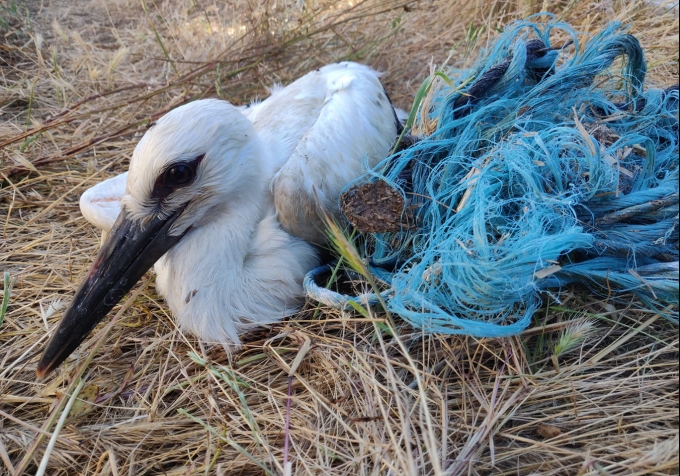 ▲플라스틱 노끈에 엉켜있는 흰 황새 (사진=Marta Acacio)