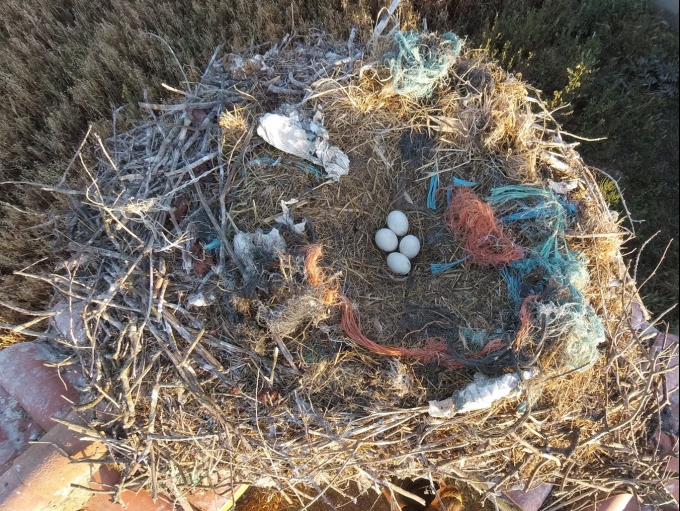 ▲ 플라스틱 쓰레기를 엮어 만든 새 둥지 (사진=Marta Acacio)