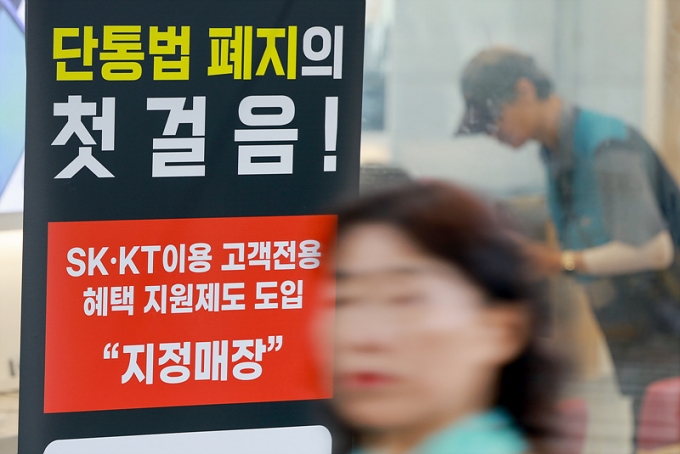 ▲오는 22일 단통법 폐지로 이통3사 보조금 경쟁이 본격화될 전망이다.(사진=연합뉴스)