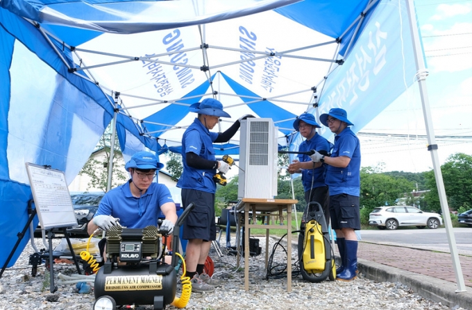 삼성전자서비스는 앞서 지난 18일부터 수해 복구 특별서비스팀을 파견해 가전제품 및 휴대전화 무상점검을 실시하고 있다. 침수 피해가 집중된 지역에는 서비스 엔지니어들이 피해 가구를 직접 순회하며 가전제품 점검과 수해 복구를 지원하고 있다.