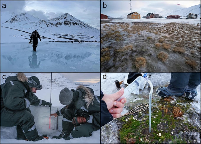 올 2월 북극해 스발바르 제도의 현장조사에 나섰던 연구팀은 이례적인 고온으로 빙하 끝자락에 물웅덩이가 생기고 녹은 땅에 새싹이 자라는 모습을 관측했다. 브래들리 교수는 "한겨울 빙하 끝자락에 물 웅덩이를 발견하거나 녹색 툰드라 위에 서 있는 경험은 충격적이고 초현실적이었다"며 "땅을 뒤덮은 눈은 며칠 만에 녹았고, 준비해간 장비는 다른 기후시대의 유물처럼 느껴졌다"고 말했다.