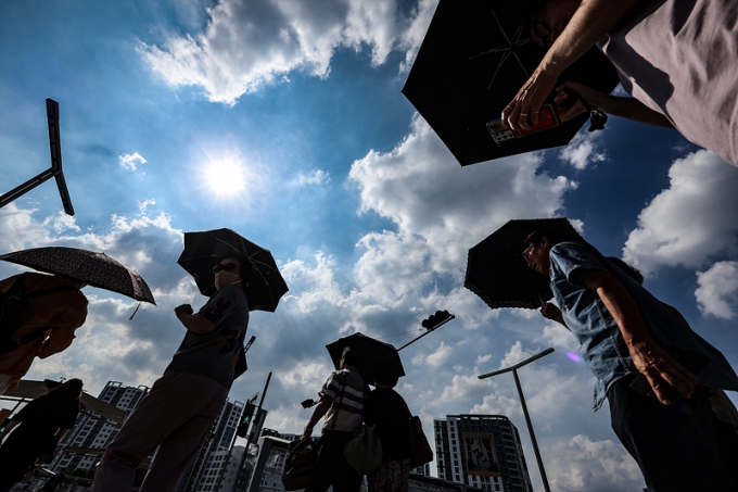 여자들만 주로 사용하던 '양산'이 38℃를 넘나드는 폭염에 남자들도 여름 필수템으로 이용하기 시작했다.