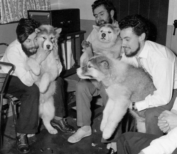 ▲1959년 애드미럴티 베이 기지에서 동료들과 함께 있는 데니스 벨(좌) (사진=英남극조사국)