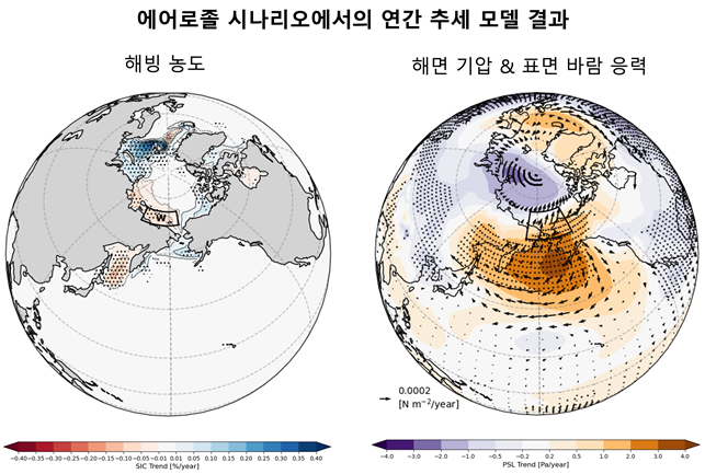 특히 에어로졸에 의해 유도된 북태평양고기압은 남풍 계열의 바람을 강화시켜 베링 해협을 통한 열의 북상을 증가시키고, 이로 인해 축치해 해빙 감소가 더욱 가속화되는 것으로 나타났다. 이에 대해 연구팀은 "온실가스로 인해 따뜻해진 해양 환경에서 에어로졸이 유발하는 대기 순환 변화가 더 많은 열을 북극으로 수송하게 되어 온실가스 단독으로 작용할 때보다 해빙 손실이 더욱 가속화되는 것"이라고 설명했다.