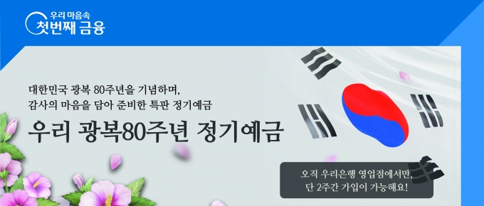 우리은행이 광복 80주년을 기념해 '우리 광복80주년 정기예금'을 출시한다고 14일 밝혔다.