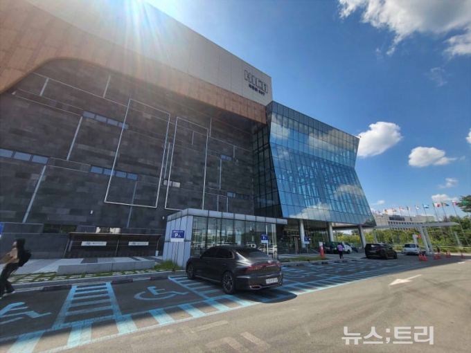 오는 10월 31일 개막까지 남은 시간은 불과 두달. 그때까지 모든 공사를 마쳐야 하기 때문에 공사 속도는 광속으로 진행중이다. 172억원이 투입된 국제미디어센터는 6000㎡ 규모의 가건물로 짓고 있다. 두 달전만 해도 기둥 2개만 달랑 있었지만 현재 콘크리트벽까지 세워져 공정률 75%에 다다랐다. 현장 관계자에 따르면 여타 미디어센터와 다르게 전시공간도 마련될 예정이라고 했다.