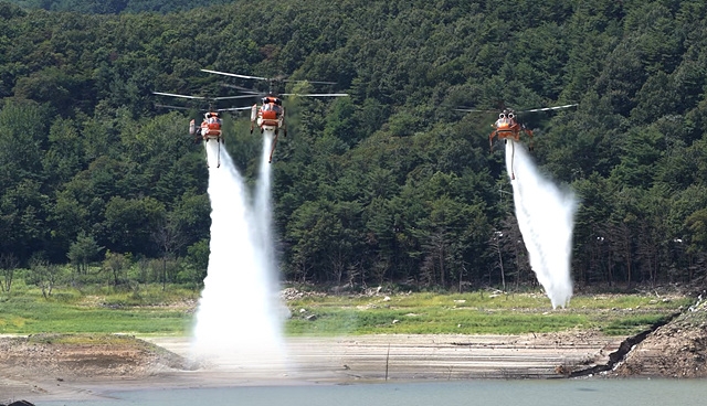 이에 국가의 모든 자원이 총동원돼 강릉으로 물을 퍼나르는 작업을 하고 있다. 산림청과 국방부는 강릉시의 요청에 따라 헬기 10대를 동원해 경포호수에서 물을 담아 오봉저수지에 투하하기 시작했다. 이 헬기들은 이날 1660톤의 물을 공급할 계획이다. 산림청은 필요에 따라 추가로 헬기를 투입할 방침이다.