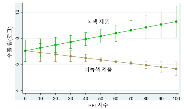 즉 환경규제가 강화되면 전체 교역량이 줄어드는 전형적인 '오염 피난처' 현상이 나타나지만, 녹색 제품에 한해서는 오히려 교역이 증가하는 현상이 나타났다는 것이다. 환경규제가 엄격한 곳일수록 녹색제품의 생산과 수출이 활발해져 공급망 규모가 최대 24% 확대된 것이 확인됐다.