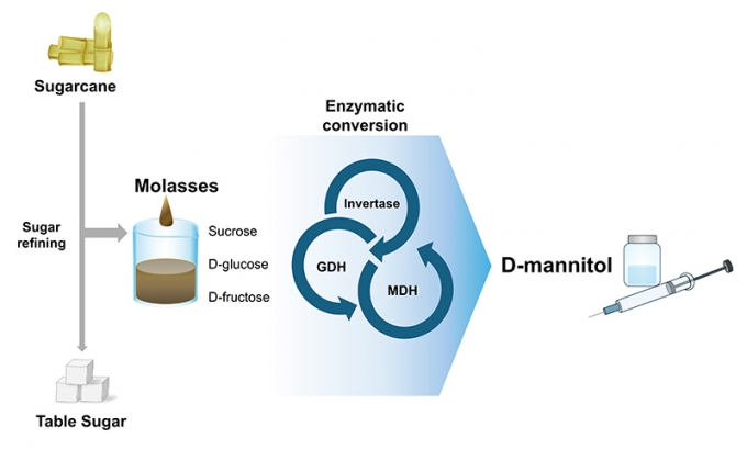 ▲설탕 정제 부산물인 당밀을 만니톨로 전환하는 과정 (자료=GIST)
