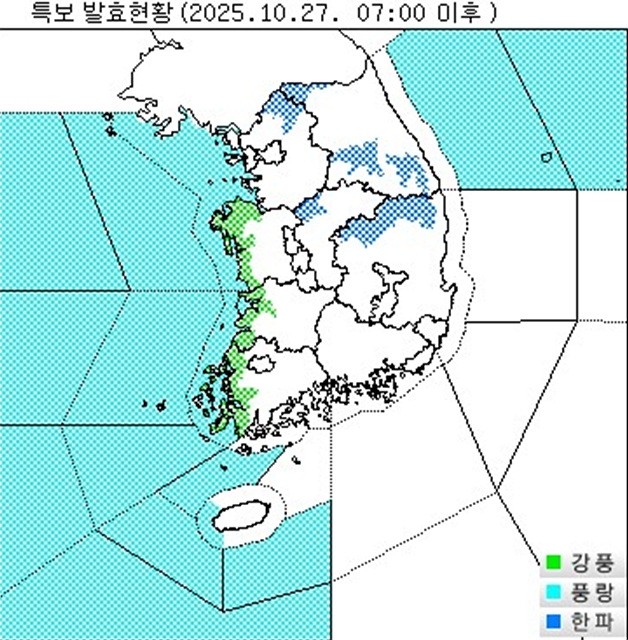 경기 연천과 포천, 강원 평창평지·횡성·철원·남부산지, 충북 진천과 음성, 경북 문경·예천·영주·봉화평지·북동산지에는 한파주의보가 내려진 상태다. 올가을 첫 한파주의보다. 한파주의보는 '아침 최저기온이 전날보다 10℃ 이상 떨어져 3℃ 이하이고 평년기온보다 3℃ 낮을 것으로 예상될 때'와 '급격한 저온 현상으로 중대한 피해가 예상될 때' 등에 내려진다.