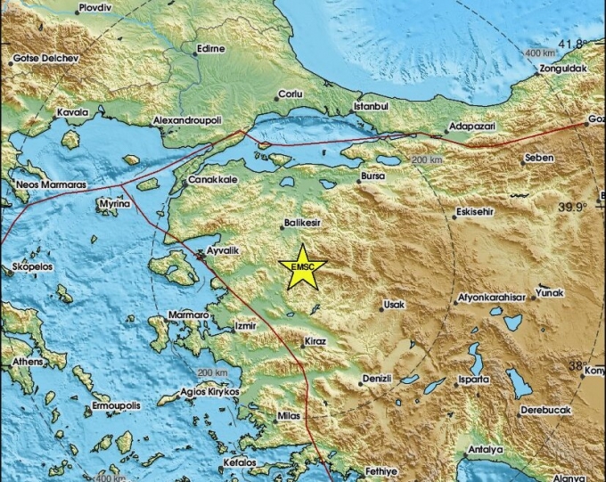 유럽지중해지진센터(EMSC)는 27일(현지시간) 오후 10시 48분경 튀르키예 서부 내륙 발르케시르 부근에서 규모 6.1의 지진이 발생했다고 밝혔다. 진앙은 북위 39.18도, 동경 28.23도, 진원 깊이는 6㎞다. 독일지구과학연구센터(GFZ)는 이번 지진 규모를 5.9로 평가했다.