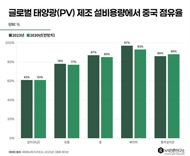 반면 중국은 재생에너지와 녹색산업을 중심으로 국제 공급망과 영향력을 확대하며 글로벌 기후시장에서 빠르게 리더십을 확대하고 있다. 2024년 탄소배출 정점을 찍은 중국은 올해 배출량이 소폭 감소할 전망이다. 이는 중국이 약속한 시점보다 약 5~6년 빠른 성과다. 중국 태양광 모듈 생산량은 2024년 기준 588기가와트(GW)로 전세계 신규 설비용량과 맞먹는다.