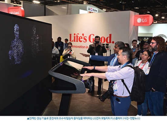 또 LG전자가 그리는 투명 올레드 디스플레이와 AI를 기반으로 한 미래 전장 시스템 비전을 선보이기도 했다. 이를테면 투명 올레드가 적용된 전면유리를 통해 AI가 가야하는 방향, 주의해야 할 점 등을 직관적으로 보여준다. 운전석과 조수석에 앉은 사람의 행동, 시선을 분석하는 인캐빈 센싱 기술을 이용해 운전자가 일정 시간 이상 시선을 이탈하면 자동으로 자율주행모드로 전환하는 기술도 있었다. 창문 건너 펼쳐진 풍경을 인식하고 해당 장소에서의 추억이 담긴 사진을 창문 디스플레이로 보여주거나 탑승자가 좋아할 만한 콘텐츠를 찾아 추천해 주는 등 공감지능의 면모도 보여줬다.