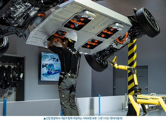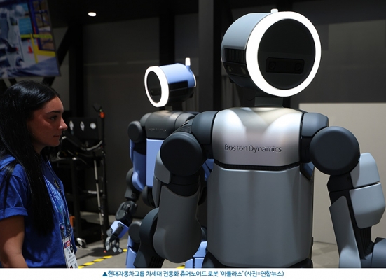 현대자동차그룹은 1836평방미터(㎡) 규모의 공간에 차세대 전동식 휴머노이드 로봇 '아틀라스' 연구형·개발형 모델과 사족보행 로봇 '스팟' 등 피지컬 인공지능(AI) 신기술을 선보였다. 전시장은 실제 제조 시설처럼 꾸며져 있어, 아틀라스와 스팟이 산업 현장에서 어떻게 사람의 일손을 돕고, 효율을 높이는 지 직접 보여주는 방식으로 꾸며졌다.