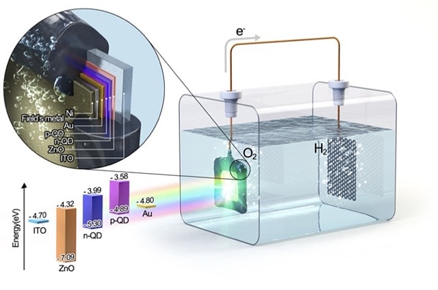 연구팀은 두 종류의 금속으로 황화물 표면을 감싸는 방식으로 희생제 없이도 뛰어난 내구성을 갖춘 광전극을 개발했다. 니켈과 필드 합금 금속이다. 양자점 표면을 감싼 니켈 호일은 물리적 보호막을 형성하며, 액체금속인 필드 금속은 니켈 호일과 양자점 사이에 생기는 미세한 틈새 밀봉해 수분(전해질) 침투를 원천 차단했다. 니켈 호일은 물 분해 반응을 돕는 촉매 역할도 해 효율을 높일 수 있다.