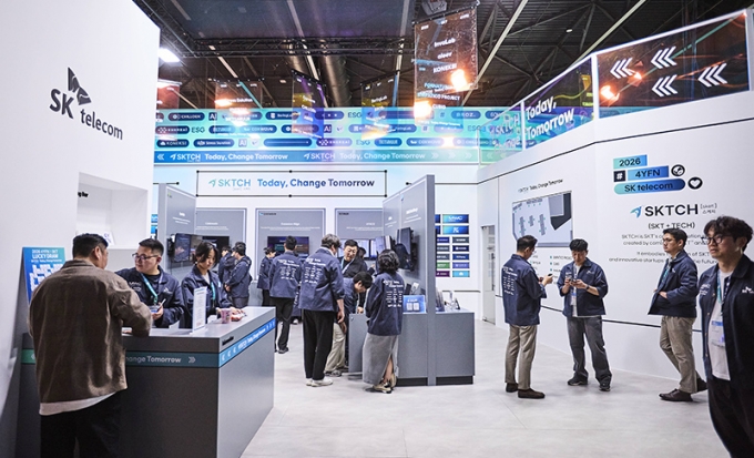 ▲MWC26 부대행사 '4YFN(4 Years from  Now)'에서 열린 'SKT 스타트업 단독 전시관' (사진=SKT)